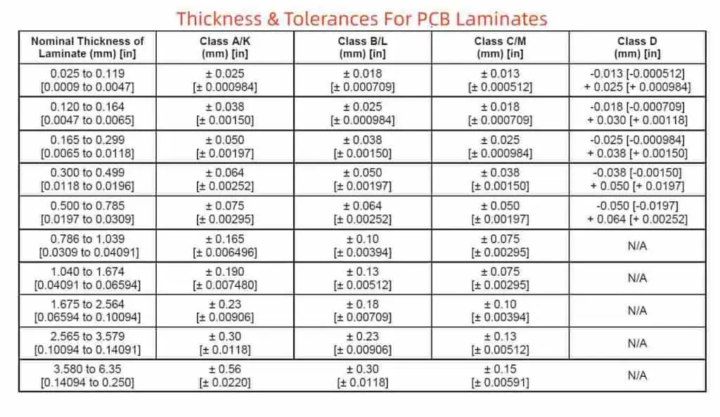 - Thickness: Our experts know that the width of the material matters a lot in this process. Therefore, it depends on the type of PCB we are producing. However, the recommended width that we normally work on is +/- 10%, but it can vary as per the PCB type.