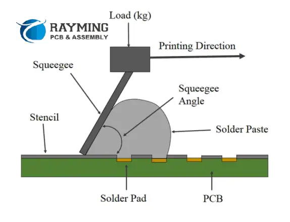 The squeegee is the hard blade of metal use to uniformly spread the solder paste on the stencil to screen print the solder paste on PCB pads. The angle of squeegee against the surface of stencil, pressure or force applied on squeegee and direction of movement of squeegee against the stencil surface will determine how properly the solder paste is applied. The squeegee speed should be 25mm/sec and squeegee force should be 500gm/25mm of squeegee blade length and angle of squeegee should be 60O. The separation speed of stencil after solder paste is applied should be up-to 3mm/sec.